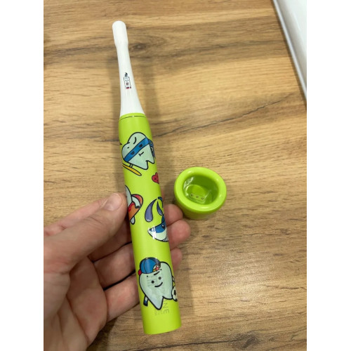 Комментарий: Действительно как пишут в описании, создается объемная пена из пасты, что дает возможность пасты использовать меньше, а эффект от чистки становится лучше. Щетка легкая, удобно лежит в руке. Есть 2 режима. Хранится на удобной подставке, есть защитный колпачок. Ребенок был рад наклейкам, сразу обклеил щетку) Сыну чищу зубы сама, так как был негативный опыт с тем, что сам он чистит плохо. Все понравилось! надеюсь супер эффект, описанный в принципе работы действительно есть и поможет зубам моего ребенка быть более чистыми, а значит здоровыми. Но не пренебрегайте также проф.гигиеной, ирригатором, зубной нитью и осмотром у врача раз в 3 мес