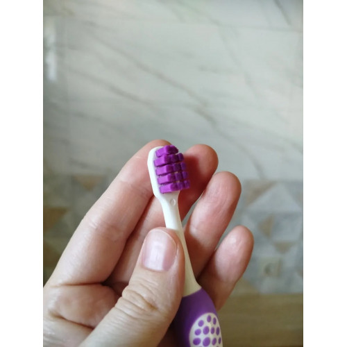 Купила по совету консультанта по прикорму. Довольна качеством. Ребёнок дает чистить зубы и сам потом мусолит щетку с удовольствием.