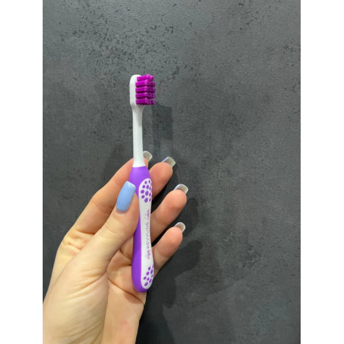 Хорошая щетка. Не жёсткая и не сильно мягкая. Ребёнку чистить не больно.