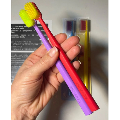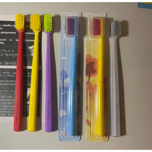Комментарий: Все члены моей семьи остались довольны данными щетками. Изначально две щетки (желтую и серую на последнем фото) приобрела для детей в стоматологии по рекомендации врача, после увидела их на озоне и решила заказать нам с мужем, тоже попробовать… Во первых - набор из нескольких щеток разного цвета оказался очень удобным - у каждого своя (по цвету) и никто не перепутает. Во вторых - каждая щетка в данном наборе находится в с своей индивидуальной упаковке, что конечно же тоже очень удобно, так как при вскрытие упаковки остальные щетки не лежат в ящике в открытом виде. На каждой из щеток есть свой защитный надежный прозразный чехол (на головку щётки) - удобно для путешествий. P.S. На фото открытые щетки в использование от 1 до 1,5 месяцев. Товаром довольна.
